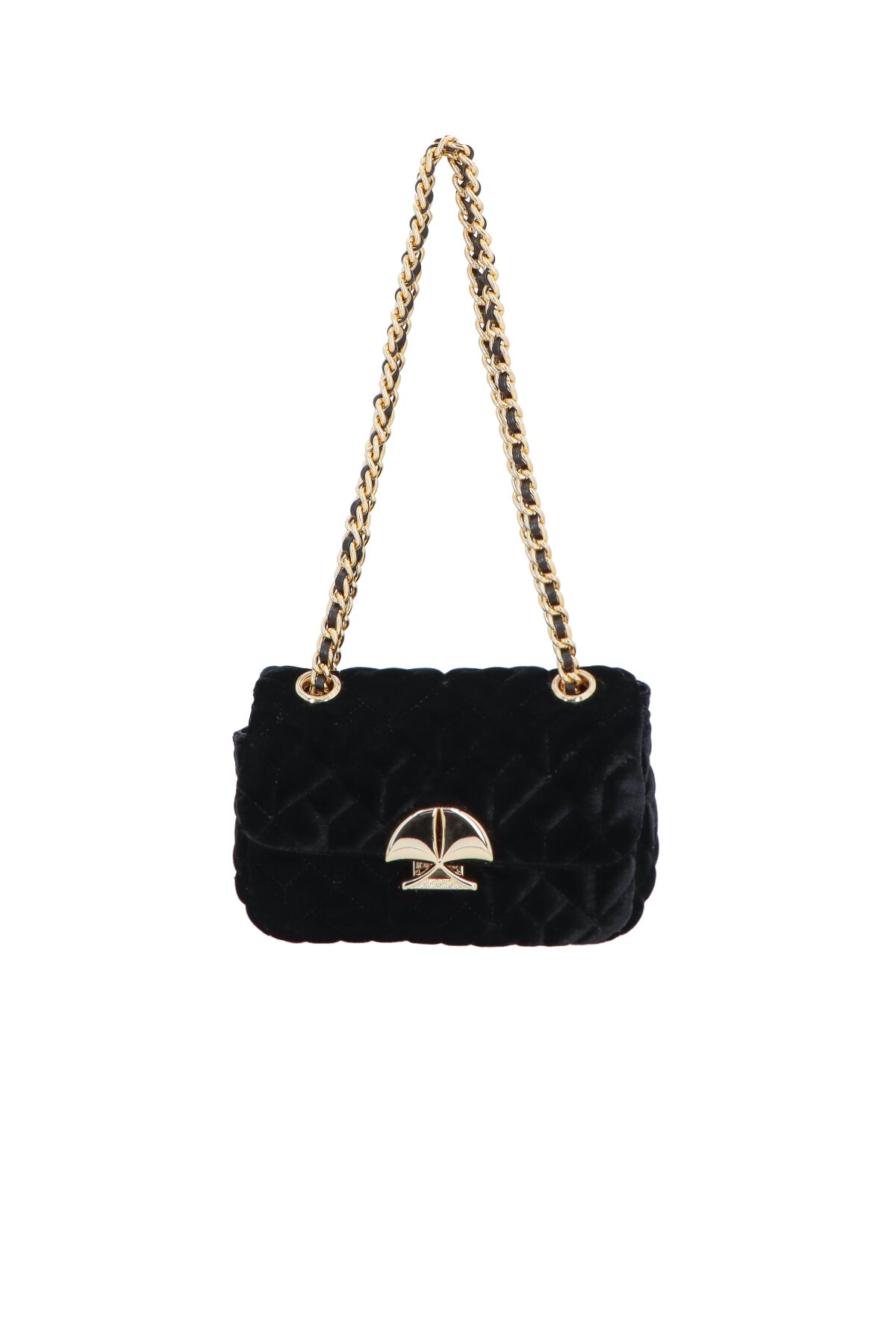 Bolsa Feminina Corrente Veludo Aplicação Preto