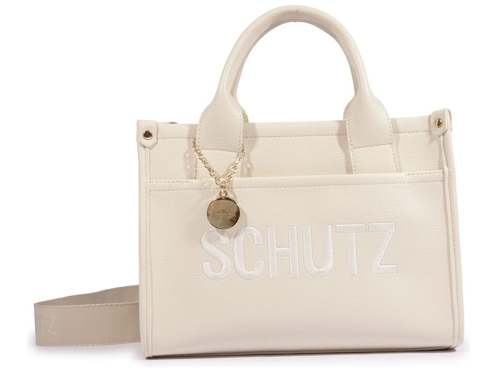 Bolsa Feminina Média Couro Alça Tecido Off White
