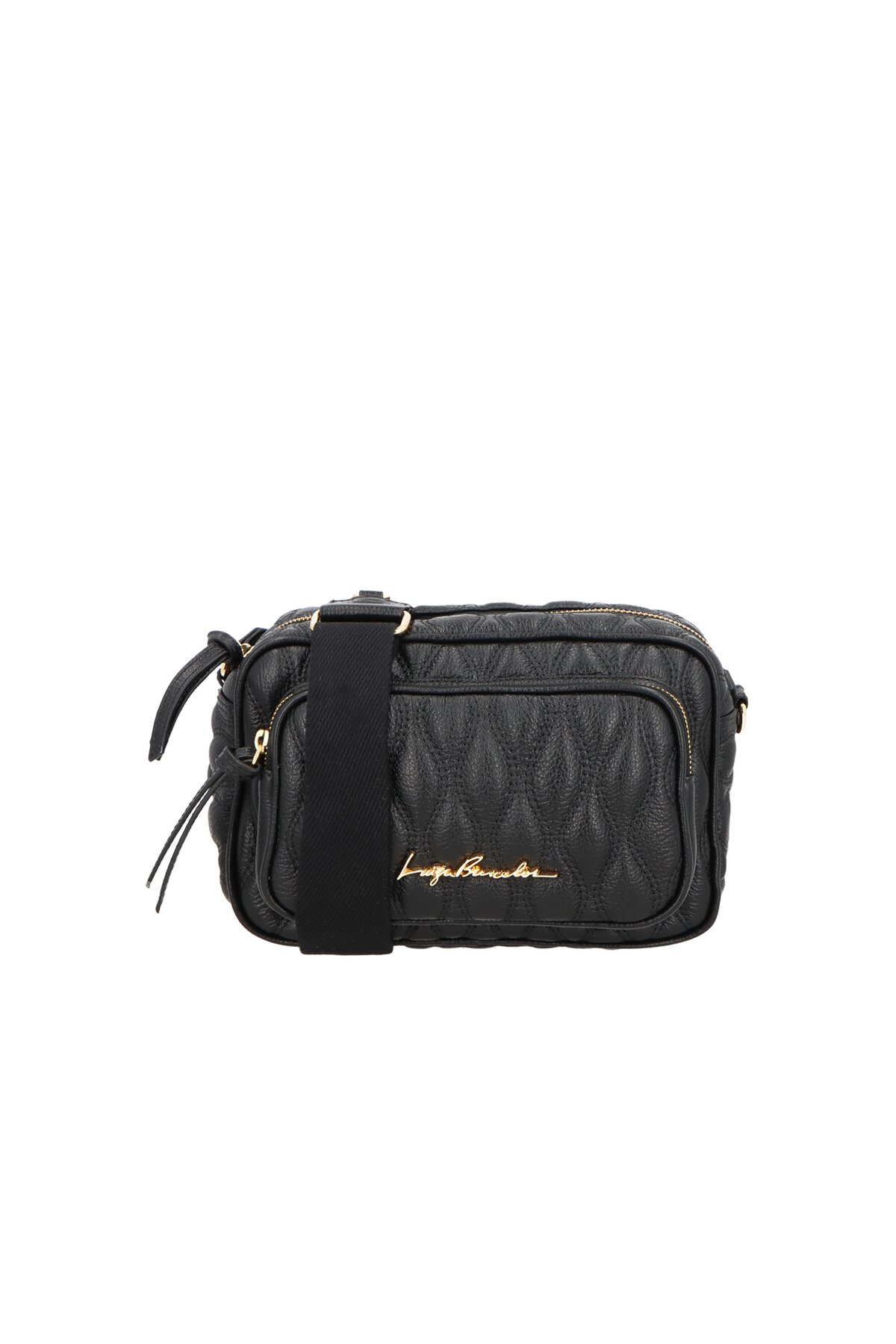 Bolsa Feminina Média Couro Metalassê Alça Tecido Preto