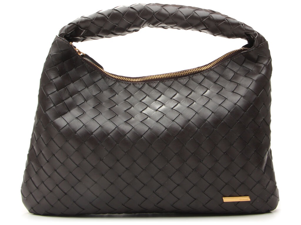 Bolsa Feminina Média Hobo Couro Tressê Coffee