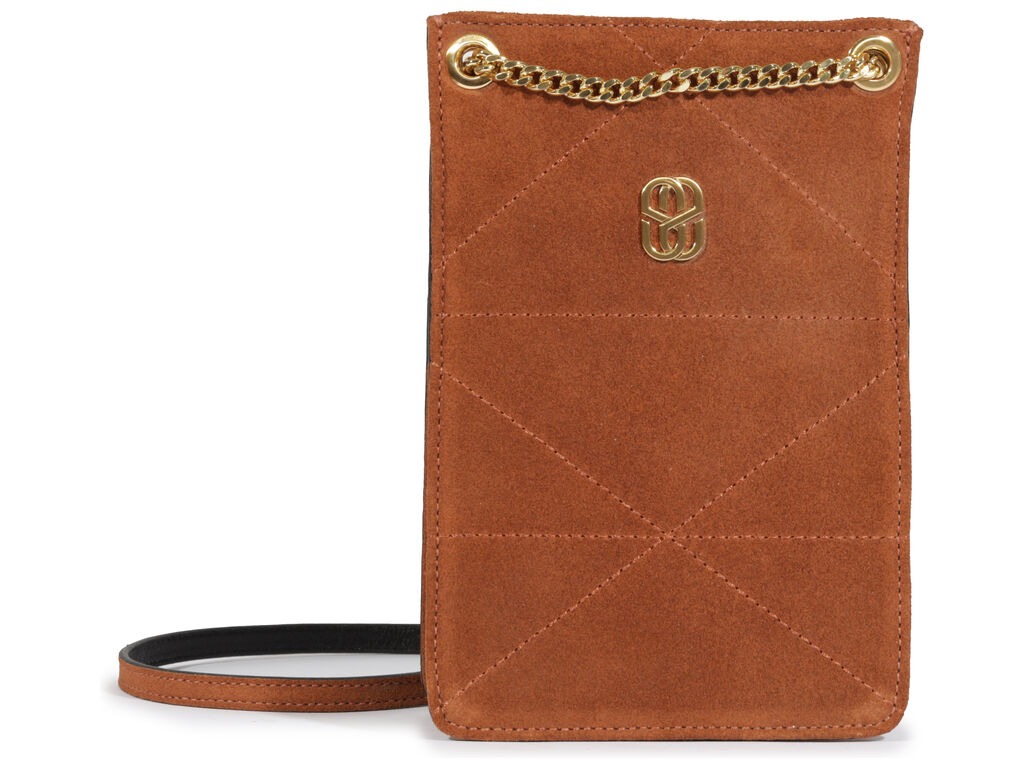 Bolsa Feminina Pequena Camurça Corrente Camel
