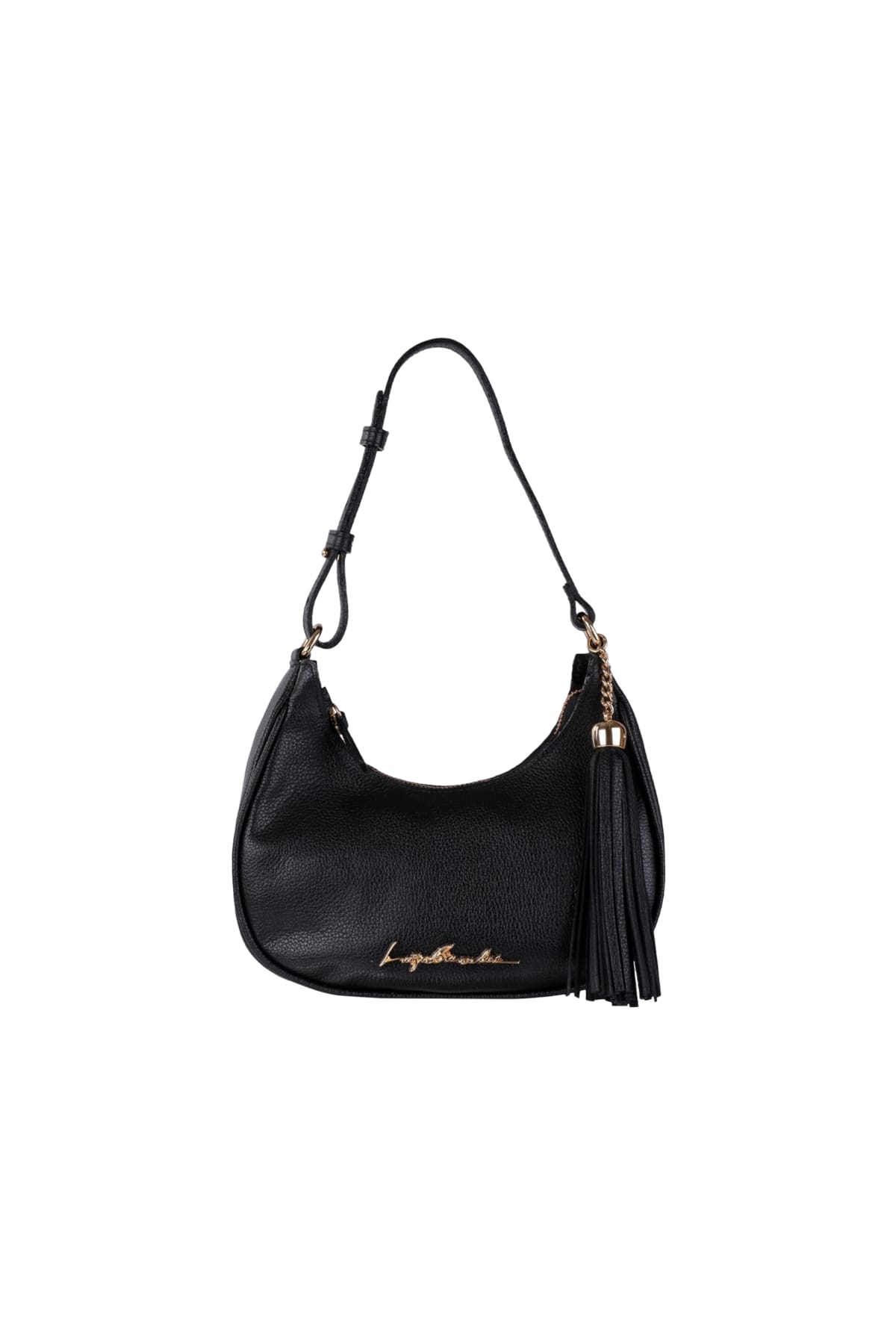 As bolsas de shape meia lua Luiza Barcelos ficam mais modernas e elevadas ao mais alto grau de refinamento. O modelo pequeno é produzido em couro liso no tom preto, possui alça de mão ajustável, marca em posição frontal, barbicacho lateral e é dividida em um compartimento principal com fecho em zíper.