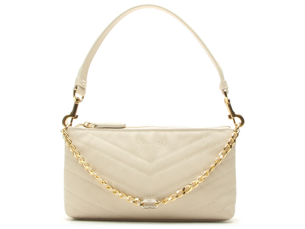 Bolsa Feminina Pequena Tiracolo Corrente Alça Couro Off White