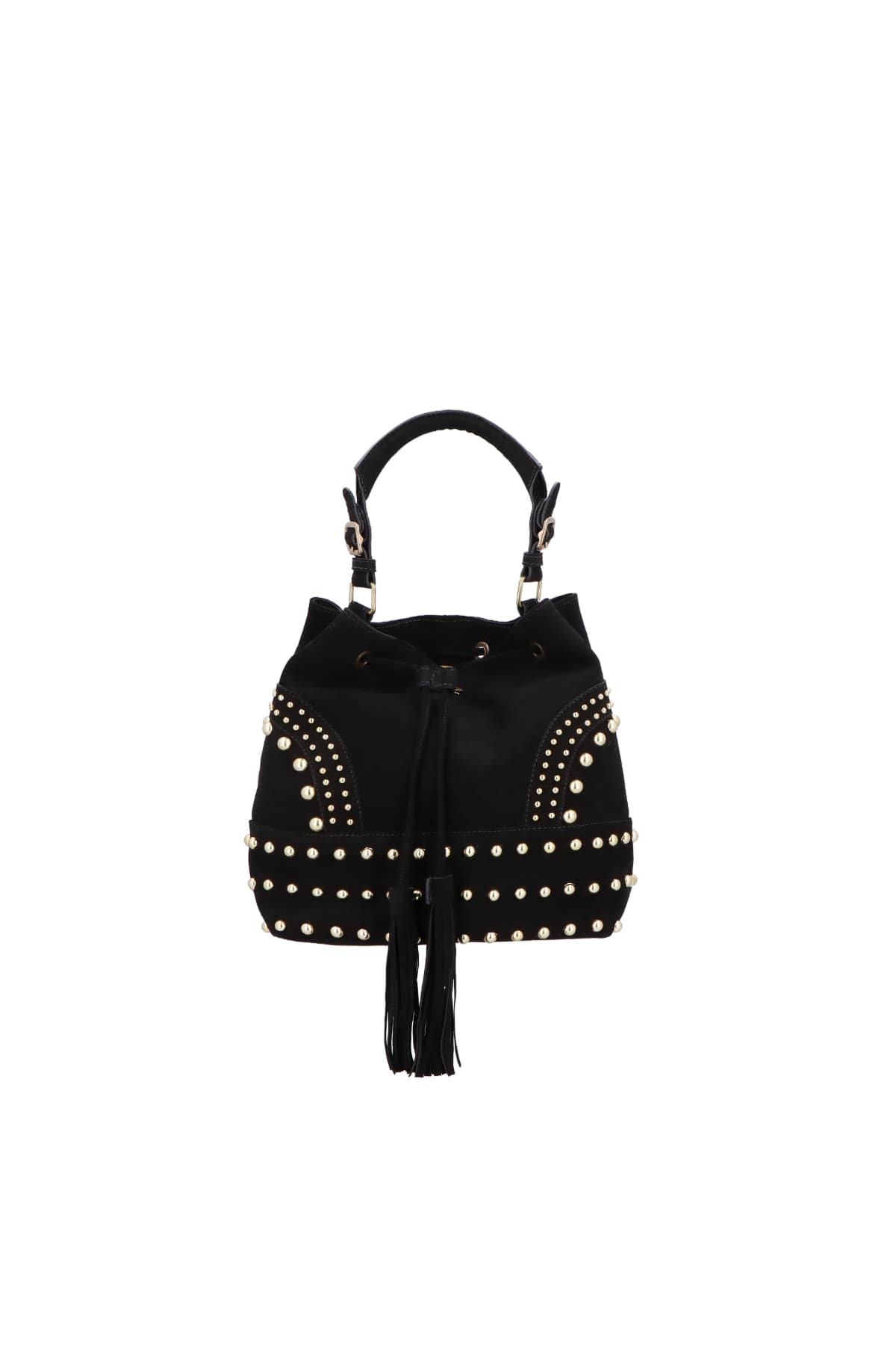 Bolsa Grande Camurça Rebite Alça Fivela Bucket Preto
