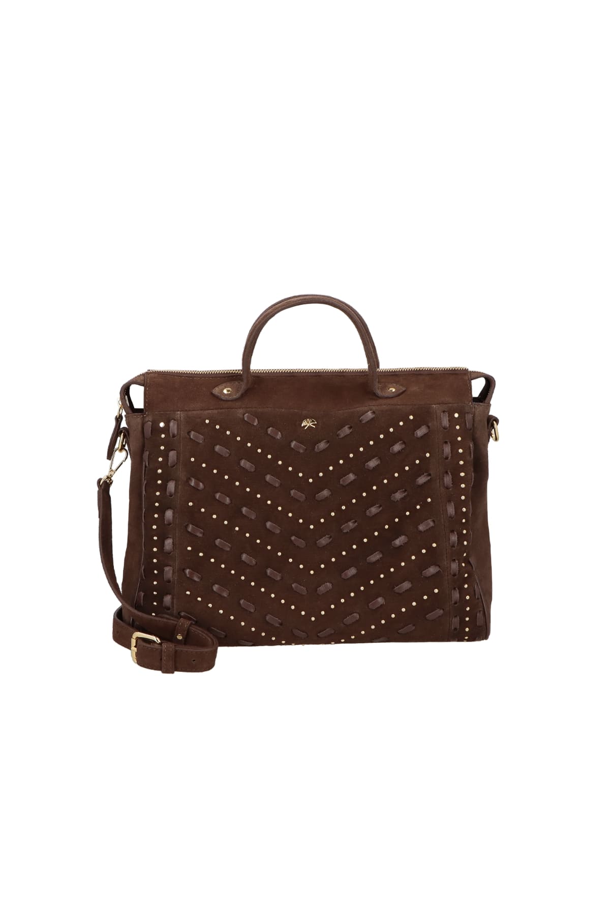 Bolsa Grande Camurça Rebite Tresse Ziper Alça Longa Coffee