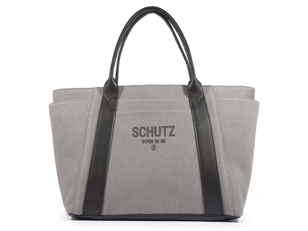 Bolsa Grande Lona Canelada Alça Schutz Cinza