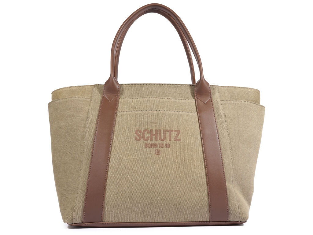 Bolsa Grande Lona Canelada Alça Schutz Verde