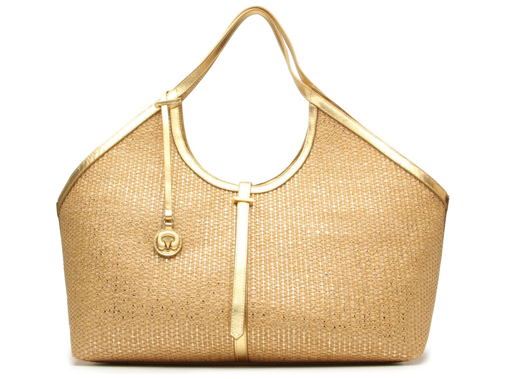 Bolsa grande Palha Metalcolor Shopper Tiras Dourada