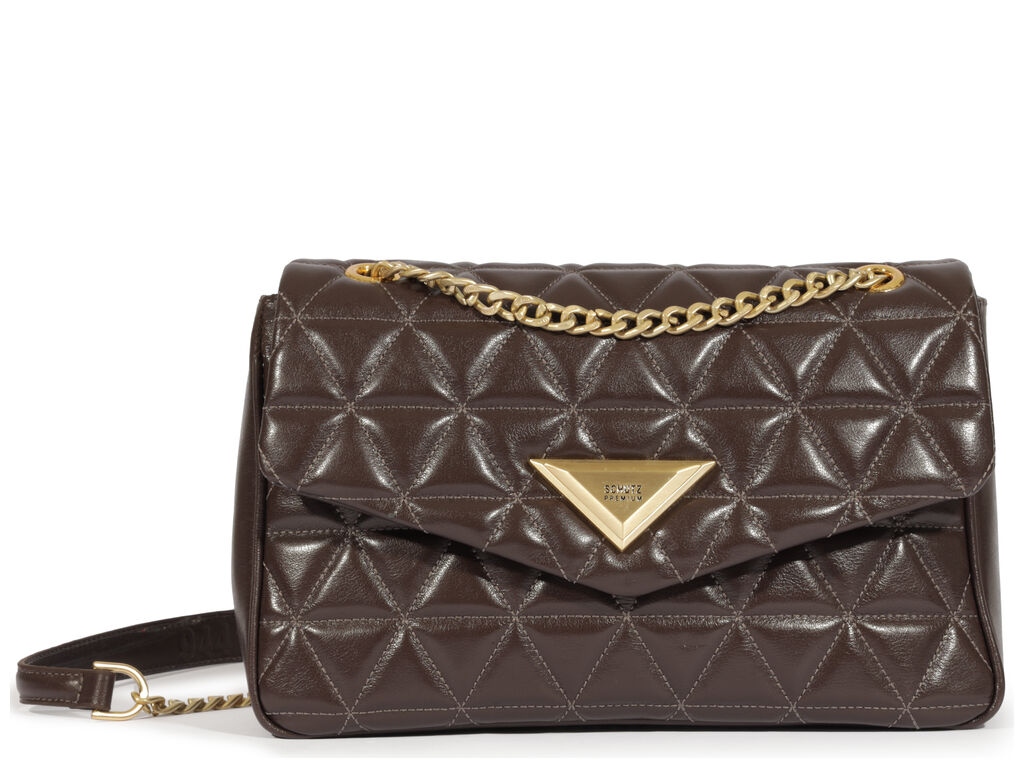 Bolsa Grande Tiracolo 944 Couro Alça Corrente Triangulo Marrom