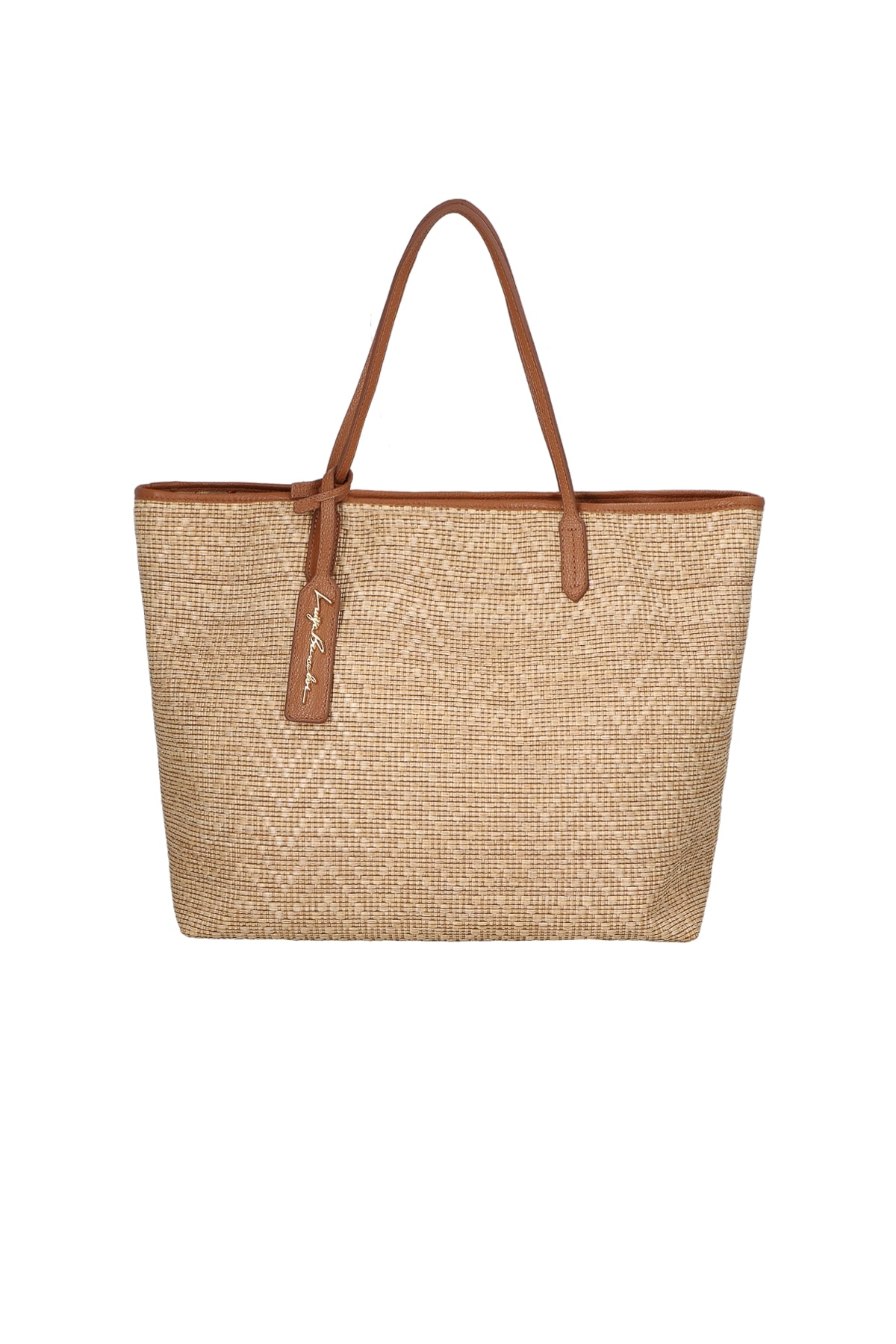 Bolsa Grande Tote Palha Couro Tag Logo Camel
