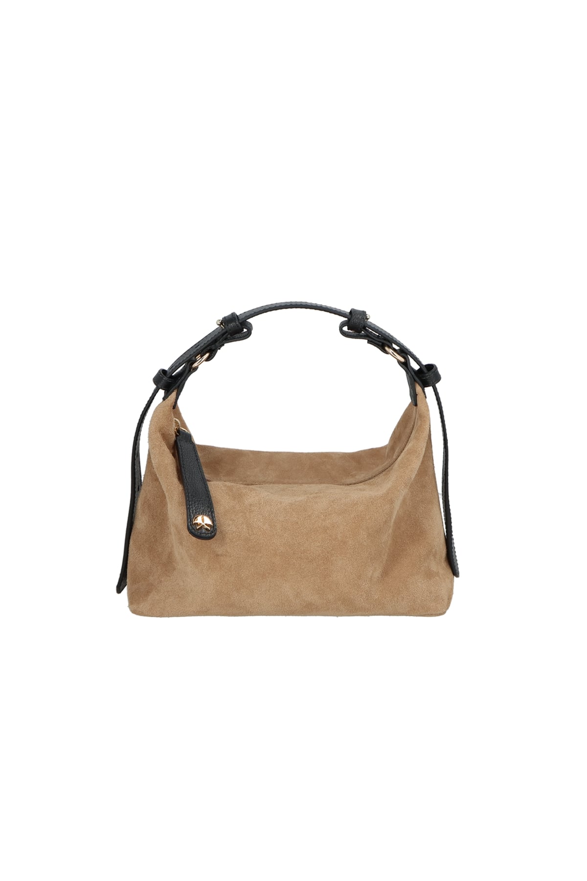 Bolsa Media Alça Couro Camurça Ziper Thassia Naves Bege
