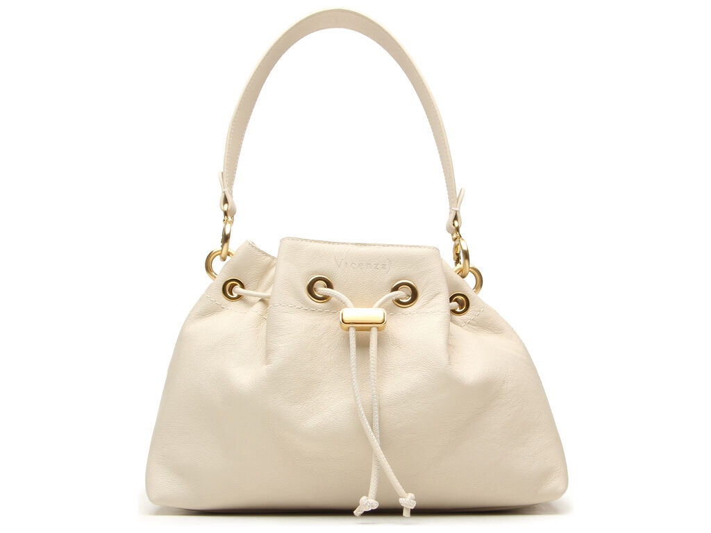 Bolsa Media Bucket Alça Couro Enfeite Off White