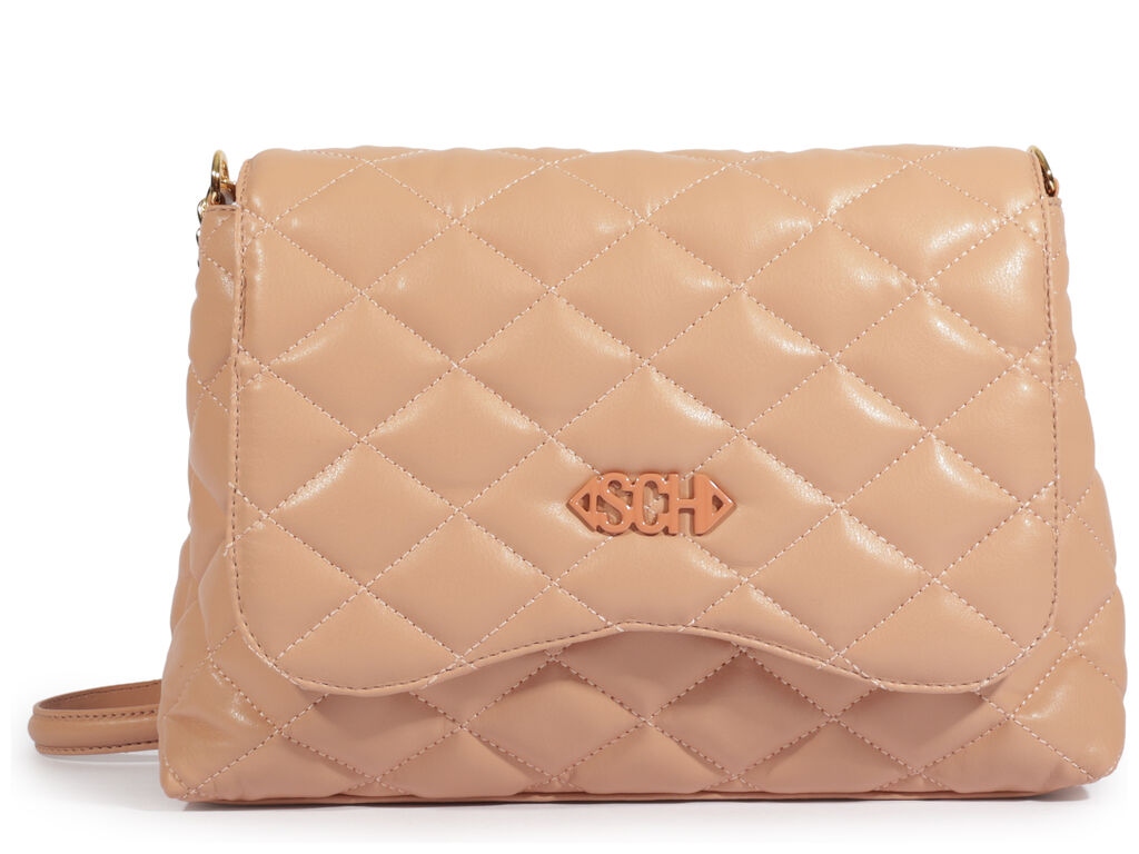Bolsa Media Couro Metalasse Tiracolo Logo SCH Nude