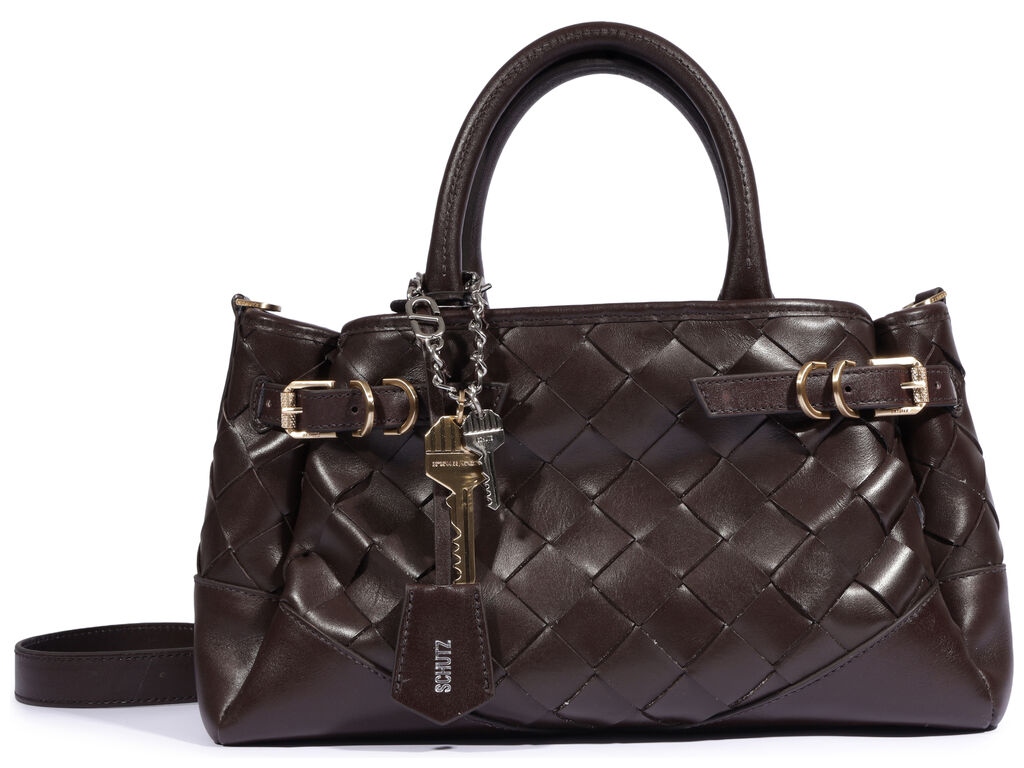 Bolsa Media Couro Tresse Tote Ziper Fivela Chave Coffee