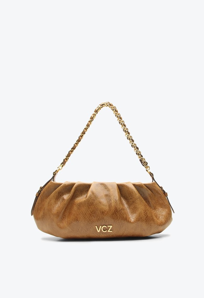 Bolsa Media Shoulder Harper Alça Corrente Couro Ziper Logo Camel