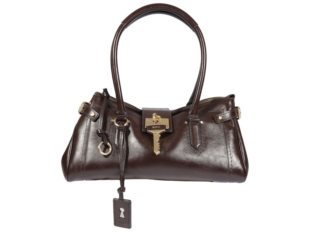 Bolsa Media Tote Chave Fechadura Couro Ziper Fivela Schutz Coffee