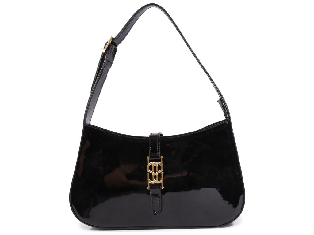 Bolsa Média Verniz Logomania Alça Fivela Ziper Hobo Preto