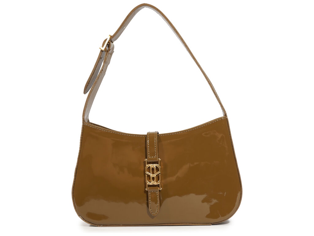 Bolsa Média Verniz Logomania Alça Fivela Ziper Hobo Verde Militar