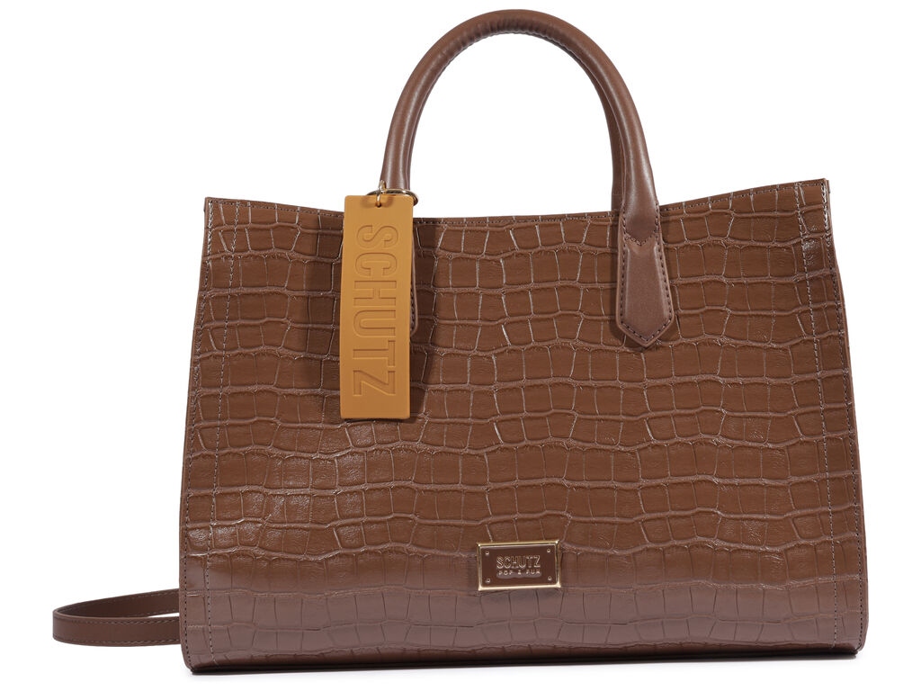 Bolsa Medio Tote Ziper Couro Croco Logo Tag Camel