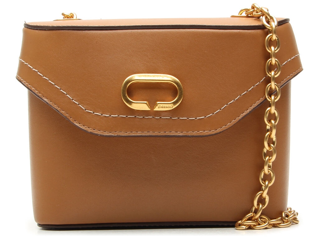 Bolsa Pequena Couro Alça Corrente Tiracolo Camel
