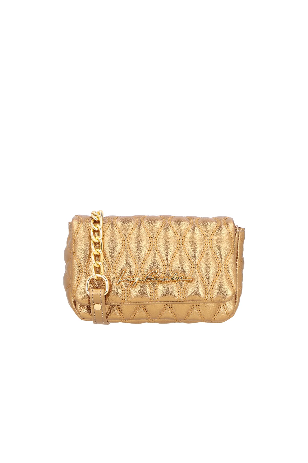 Bolsa Pequena Couro Metalassê Alça Corrende Logo Bronze
