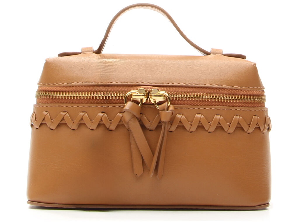 Bolsa Pequena Tiracolo Camel Tresse Alça Couro Ziper Camel