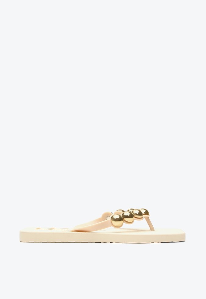 Chinelo Flat Tulum Fancy Flops Aplicação Esferas Nude