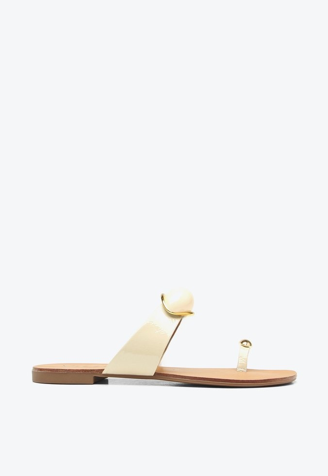 Chinelo Rasteira Flat Belluno Verniz Perola Dedo Off White