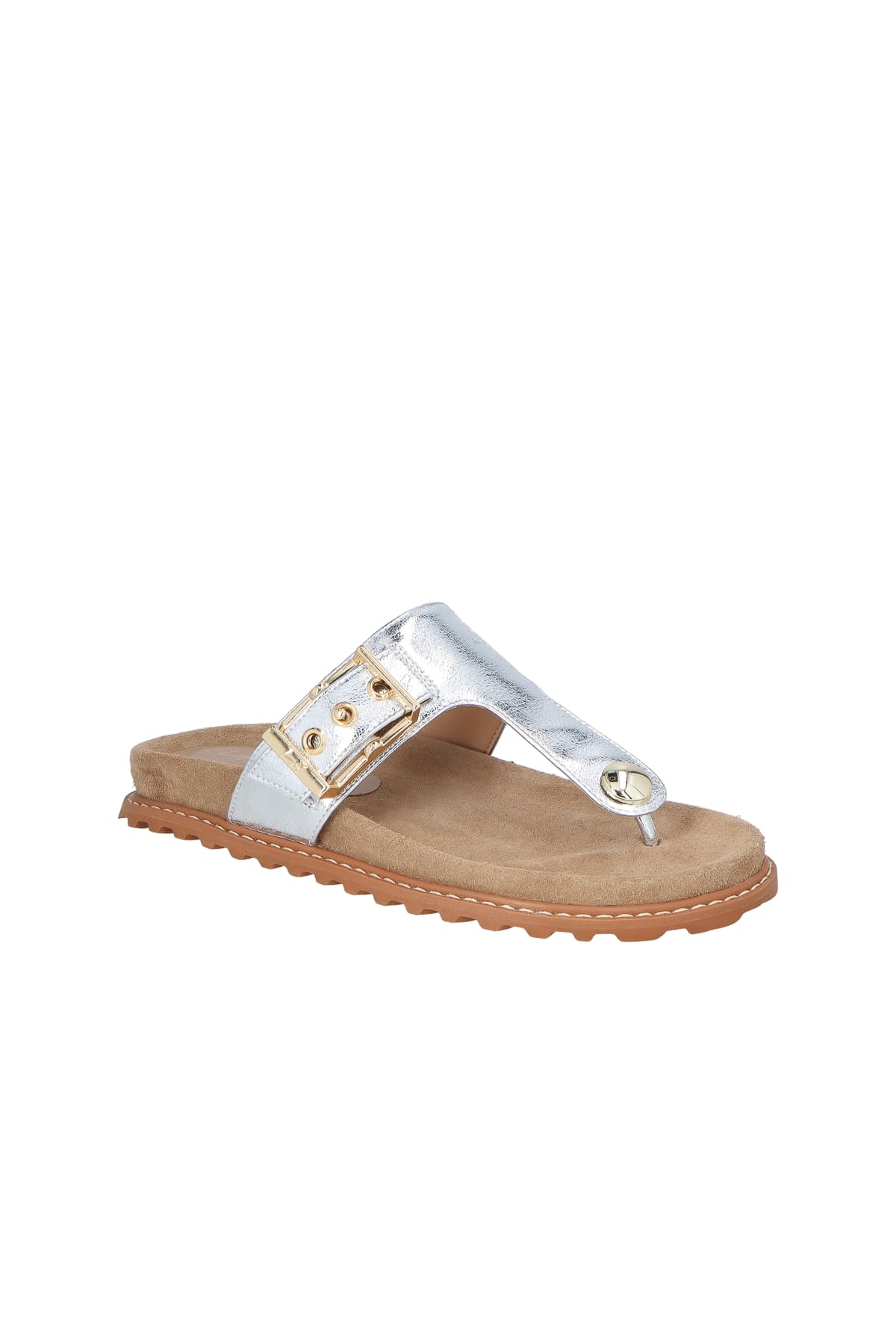 Papete Sandalia Camurça Tratorado Fivela Metalcolor Prata