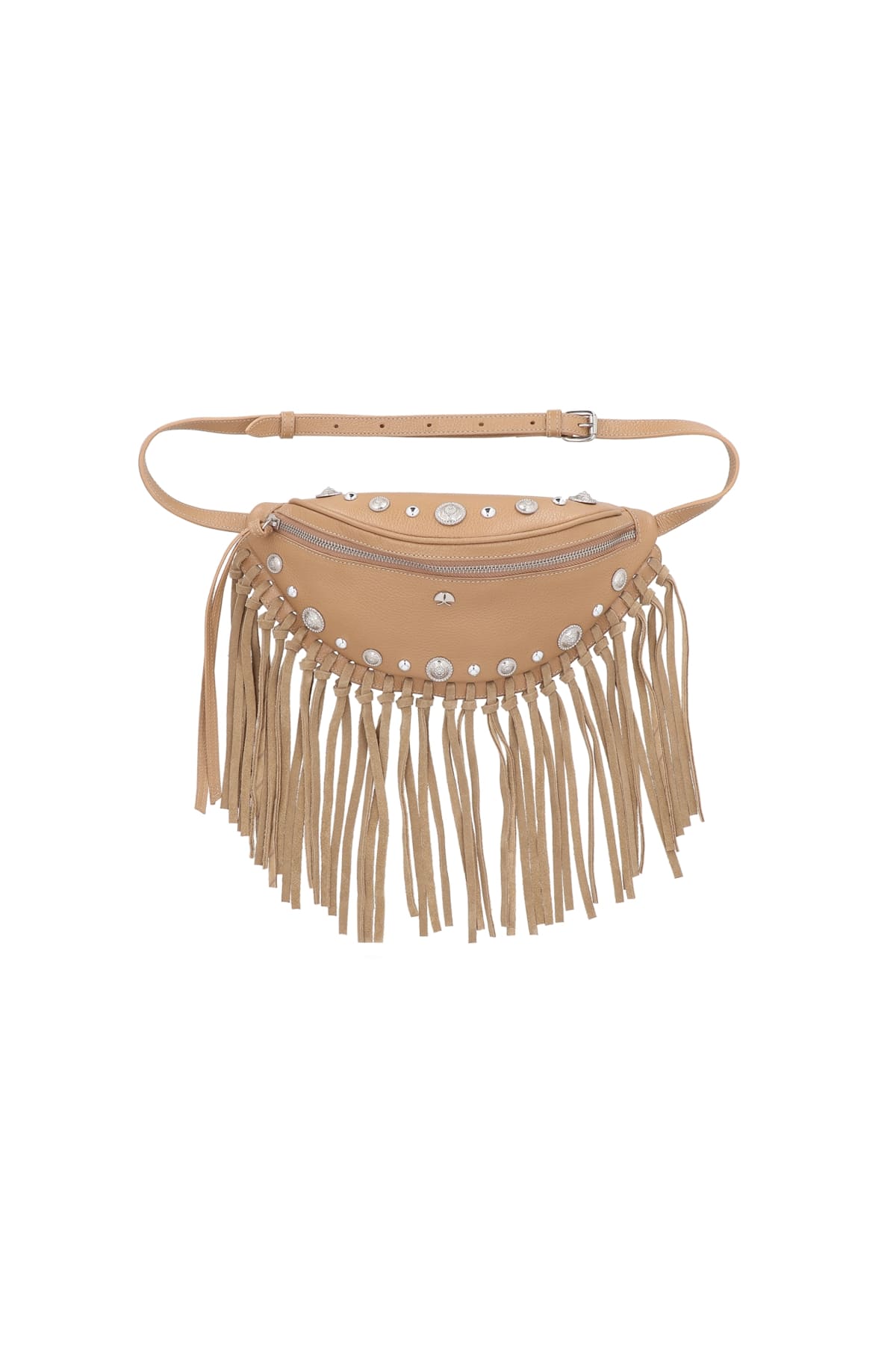 Pochete Média Couro Fivela Enfeite Camurça Ziper Rebite Marrom