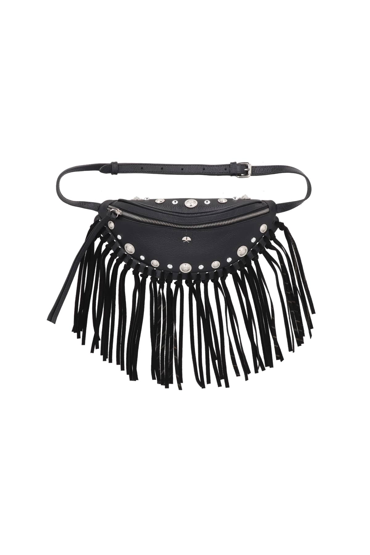 Pochete Média Couro Fivela Enfeite Camurça Ziper Rebite Preto