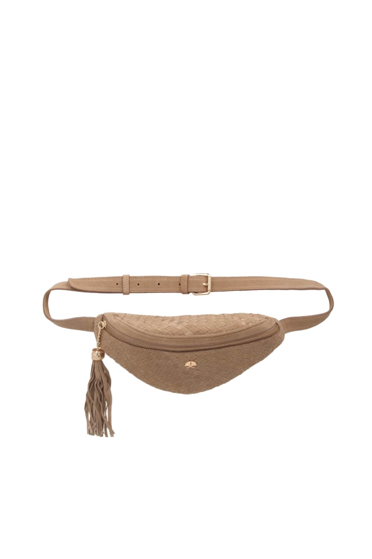 Pochete Média Tresse Enfeite Camurça Ziper Fivela Fendi
