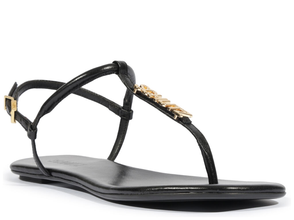 Rasteira Feminina Tira Alça Fivela Logomania Dourado Preto