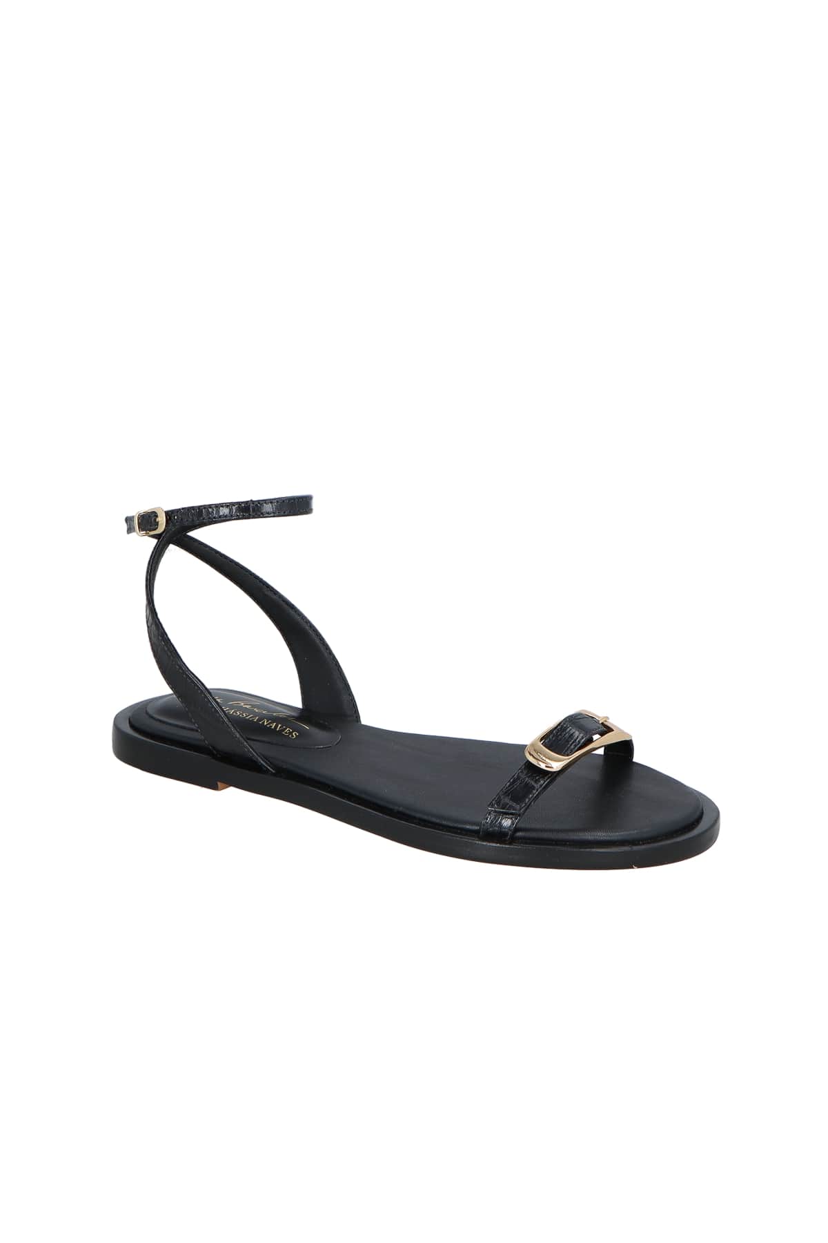 Rasteira Fivela Metalica Couro Croco Thassia Naves Preto