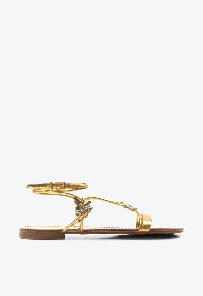 Rasteira Flat Belluno Borboletas Apliques Metalcolor Dourado