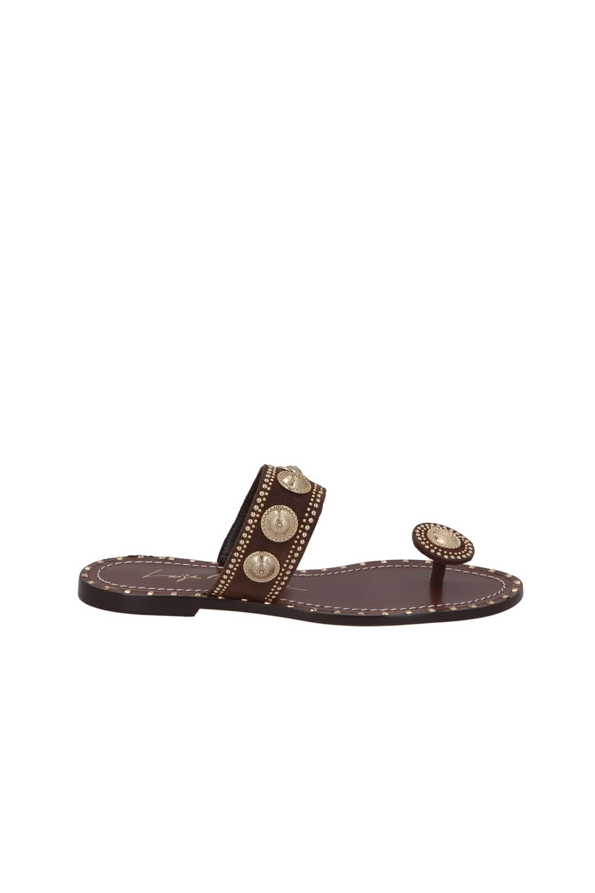 Rasteira Rebites Tira Camurça Apliques Coffee