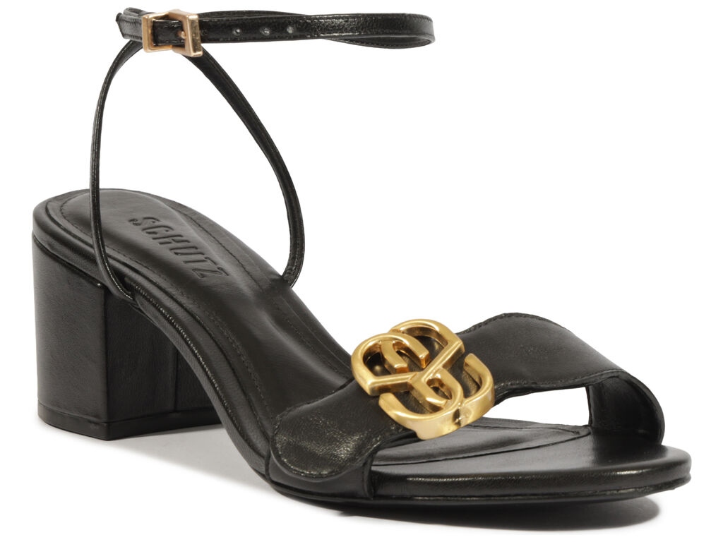 Sandalia Salto Médio Bloco Tira Fivela Logomania Preto