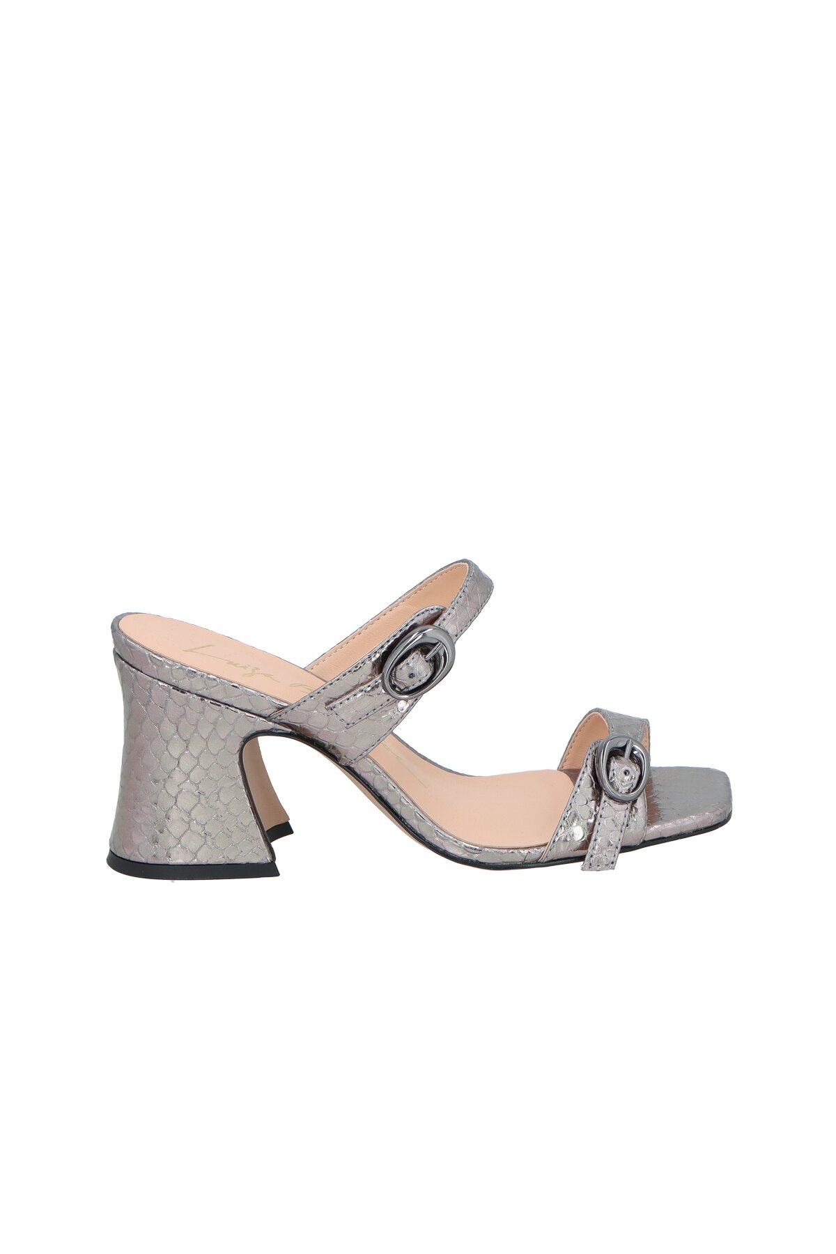 Tamanco Feminina Salto Bloco Cobra Prata
